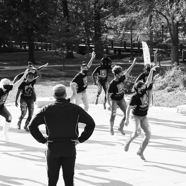 Parks, grassy areas, and even concrete spaces became the African American Dance Company’s new creative environment.