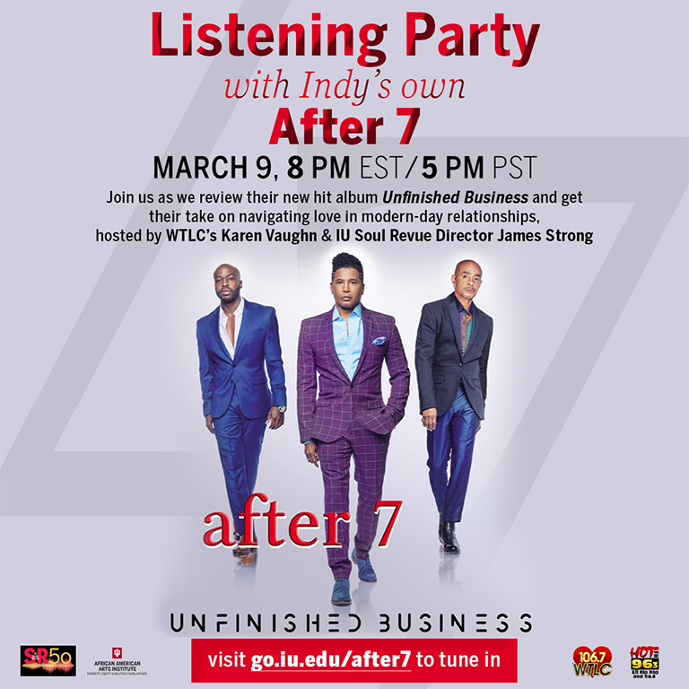A talk with Indiana’s own R&B supergroup After 7 as we review their latest hit album "Unfinished Business," hosted by IU Soul Revue Director James Strong and 106.7 WTLC's Karen Vaughn!